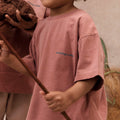 Made with care, this tee is non-toxic and mineral dyed, ensuring it's gentle on both your child’s skin and the planet. The relaxed, oversized shape allows room for growth, making it the perfect piece that will fit and grow with your child. Say goodbye to fast fashion and hello to eco-friendly style that lasts.